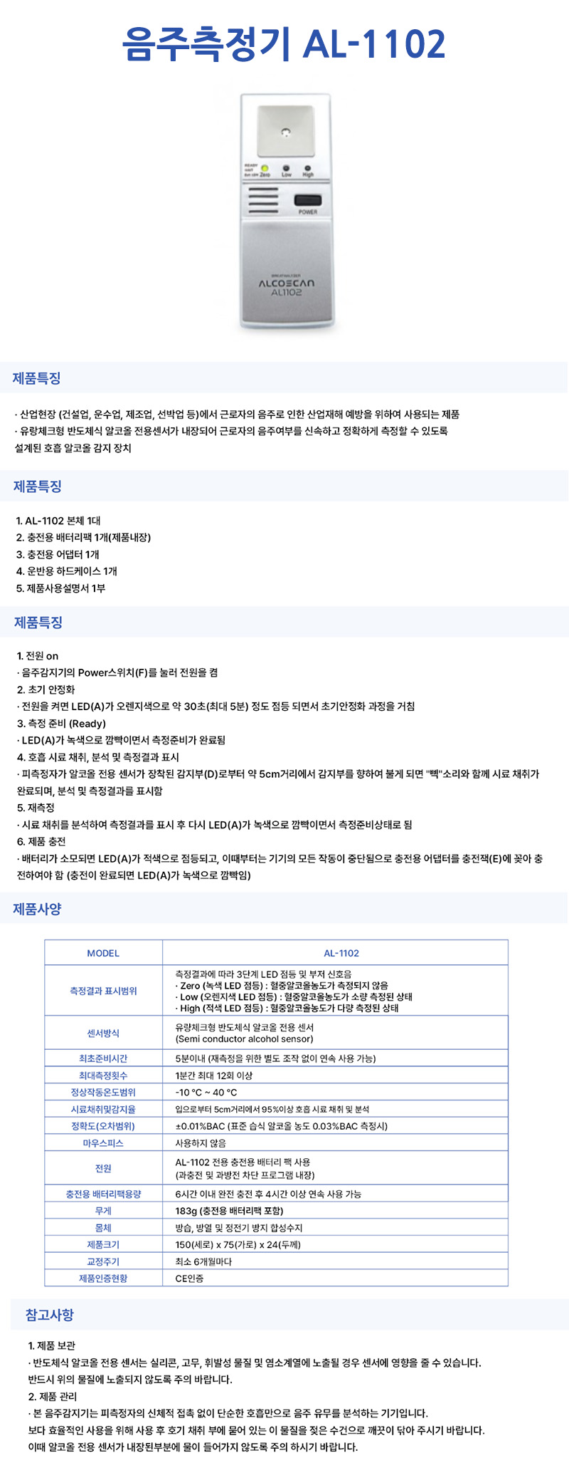 home > 계측/공구/자재/발파 > 음주.혈당-건강측정 > 음주측정기 > AL-1102 음주측정기