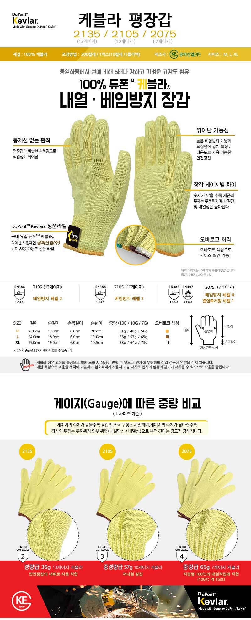 home > 장갑/안전장갑-손보호구 > 면.코팅-다목적 > 케블라-다목적 > Kevlar-2075 케블라 장갑(중량급-7G)