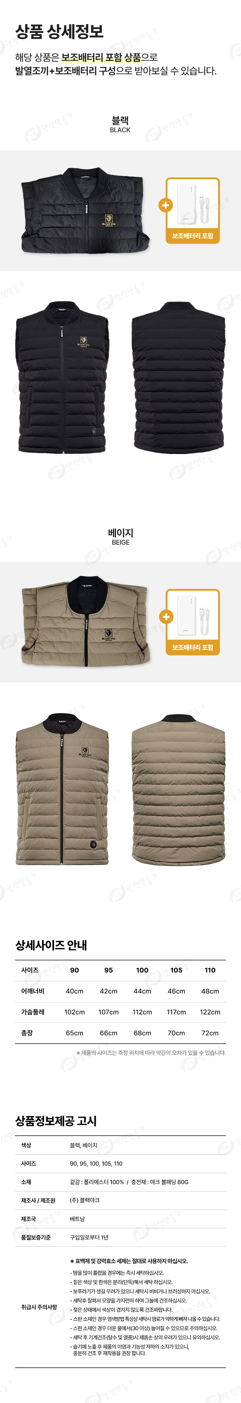 블랙야크 S-발열조끼(베이지-3단조절) 보조배터리1+1포함