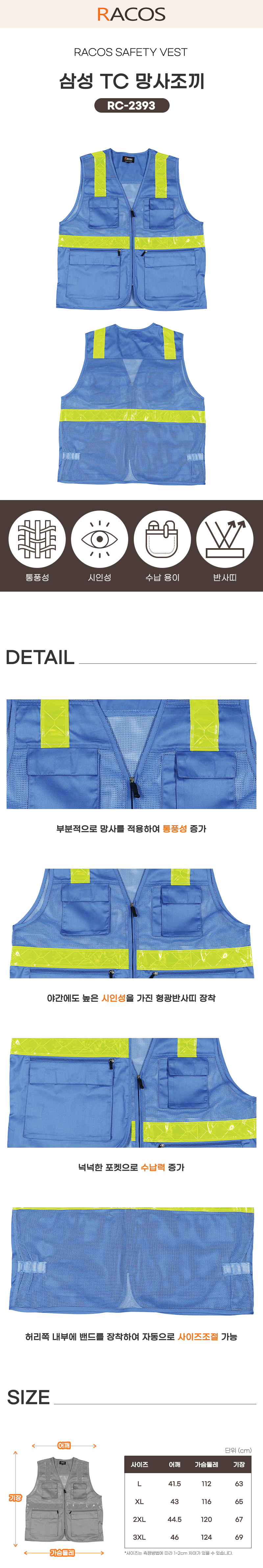 home > 조끼/반사조끼/단체조끼 > 작업용-TC 망사조끼 > 라코스 RC-2393 삼성 TC 망사조끼(블루)