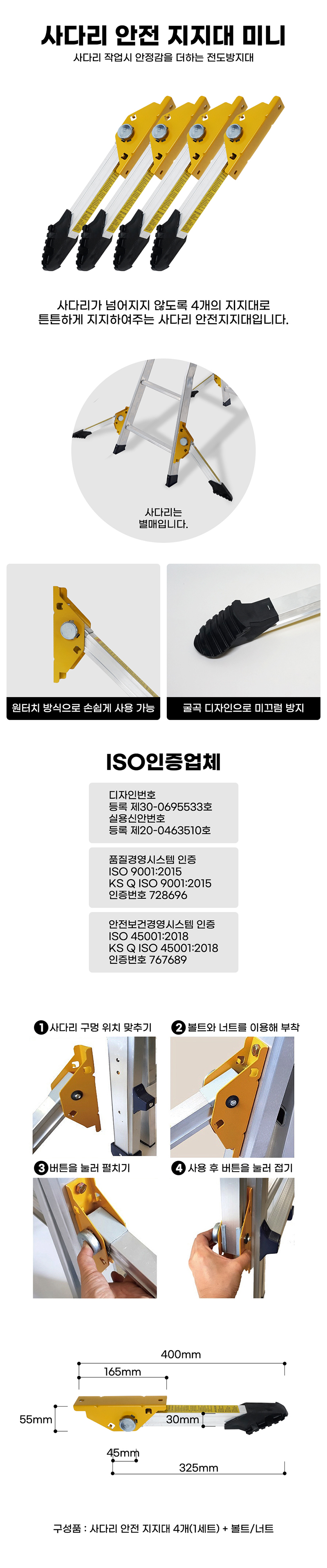 home > 가설/안전망/로프/테잎 > 비계-안전가설재 > 사다리-우마 > 사다리 전도방지대 미니(4ea/set)