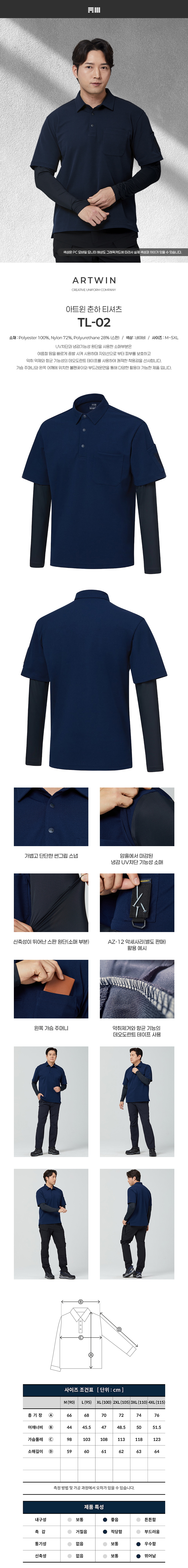 home > 작업복/유니폼/단체복 > 티셔츠-셔츠 > 긴팔-사철.춘하 > TL-02 아트윈 춘하 티셔츠(네이비-흡한속건)
