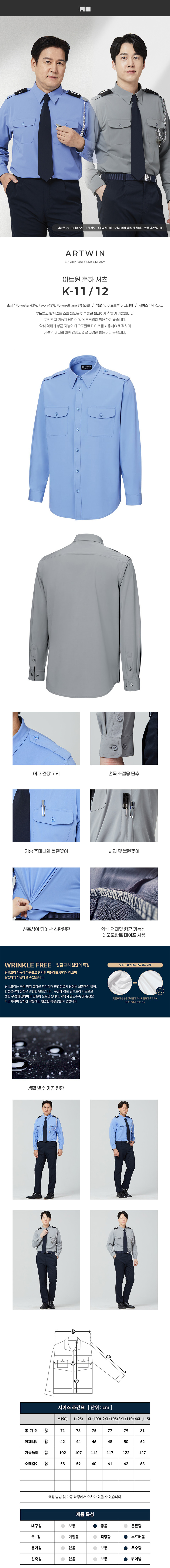 home > 작업복/유니폼/단체복 > 셔츠-티셔츠 > 긴팔-춘하복 > K-11/12 아트윈 춘하 셔츠(라이트블루/그레이-신축성)