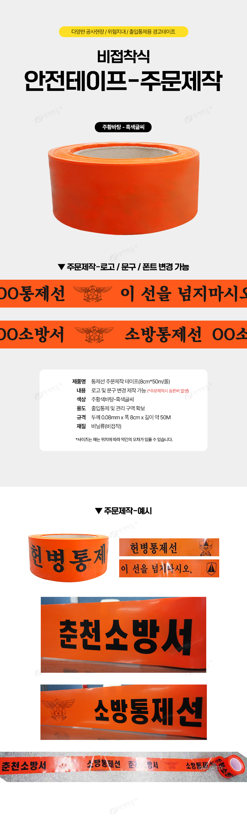 안전테이프 비접착식(8cm*50m/롤)[주문제작]